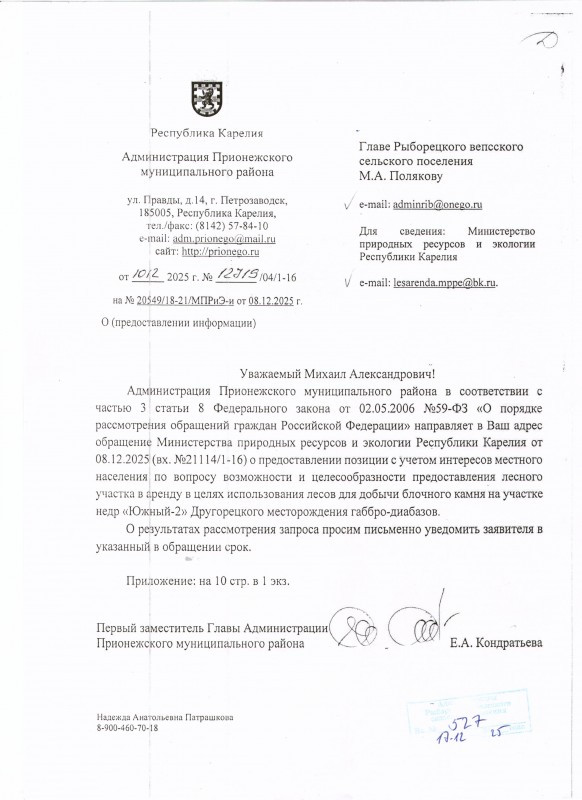 Официальное письмо Министерства природных ресурсов и экологии по результатам публичных слушаний